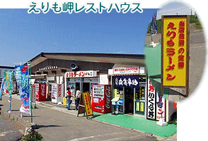 ![]() えりも岬パーキングエリア内にあるレストハウスで昼食をいただくことになった二人は、「えりもラーメン」の黄色い看板に誘われ、レストハウス内へ直行。「お食事と喫茶の店 かねこ」さんへ二人は入って行く。 |