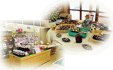 空腹を満たした二人は、館内を見て回る事にした。まず目を奪われたのは、建物に入って左側にある「洞爺村紹介コーナー」。 洞爺村の歴史を知ることの出来るこのコーナーの真ん中に、洞爺村で作られている「手づくりカヌー」が紹介されていた!「あ!カヌーだぁ!!」と、あかりちゃんは再びカヌー体験?! すっかりカヌーの虜になっているのでした。 その他、特産品コーナーはとうや湖農協が村の特産品などを手頃な値段で提供していたり、村民ギャラリーには村民の皆さんが作られた民芸品が並んでいた。 |