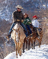 ![]() 10分程登った辺りでチョット一休み。キムチくんとタケダちゃんは、雪の中から顔を出している笹の葉をムシャムシャと頬張る。 「キムチよく食べるねぇ。」と、ふみちゃん。 「そろそろ戻りますヨ〜。下りの時は上半身を少し後ろにのけぞるような体勢にします。 足は、かかとに力を入れて下さいねぇ。」と、湯藤さんから下りの時の姿勢についてご指導を頂きました。 手綱を右にグイっと引いて馬の向きを変えます。 「タケダちゃ〜ん、右、右向いて・・・。葉っぱは、もうおしまいだよぉ。」と、食べるのに夢中なタケダちゃんに話をかけるえりちゃん。ふみちゃんも「キムチ〜行くよぉ。」と、手綱をグイグイ引く。 |