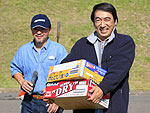 ![]() そんな中「リーチ!」の声。会場内のムードがどんどん盛り上がってきます。 リーチの声が確実に増えてきたところで、「ビンゴ〜ビンゴッ、ビンゴッ!!」と、ビンゴゲームの王者が決定!(左写真) たくさんある景品の中からビンゴの王者が選んだのは、家族でのキャンプにも充分なサイズの電子冷温ボックス。 今後のキャンプの必需品になりそうですね。 他に、“ちょっと肌寒いな”と感じた時に颯爽と羽織りたいホビーのリバーシブルベストや、キャンプの予算などを計算するのに便利なハイマーの電卓、炭や懐中電灯といったキャンプ用品など、どれもキャンプファンが貰って嬉しいものばかり。 ビンゴしたオーナーさんは、「これいいなぁ。あっでもこれもいいなぁ。いや〜迷うなぁ〜。」と、楽しそうに景品を選んでいました。 |