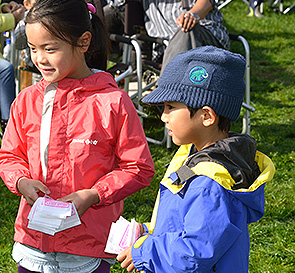 まずは、子供から大人まで楽しめる「じゃんけん大会」からゲーム大会スタート。 ジャンケンを楽しんでいるだけの子供たちもいれば、常にグーだけを出してポチ袋を貰っているヨチヨチ歩きのチビッ子まで、大人よりも子供中心のゲームになっている様子。単純なルールとはいえ、優勝賞品がかかったこの勝負、大人も子どもも入り混じっての真剣勝負があちらこちらで展開されます。 たくさんGETしたポチ袋の中身は、果たしてどうなるのか、それでも勝負に勝ち満足そうな表情です! |