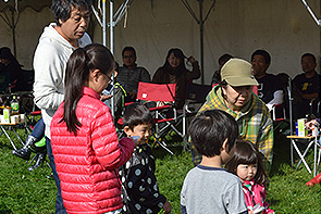 次のゲームは、参加者全員によるビンゴ大会。こちらも、毎年豪華賞品が当たることでおなじみのゲーム。 数字が一つひとつ読み上げられていくにつれ、会場内からは歓声、ため息などさまざまな声が聞こえてきます。 しばらくすると「ビンゴ〜!」と、次々に声が上がり、皆さんに賞品が贈られました。 |